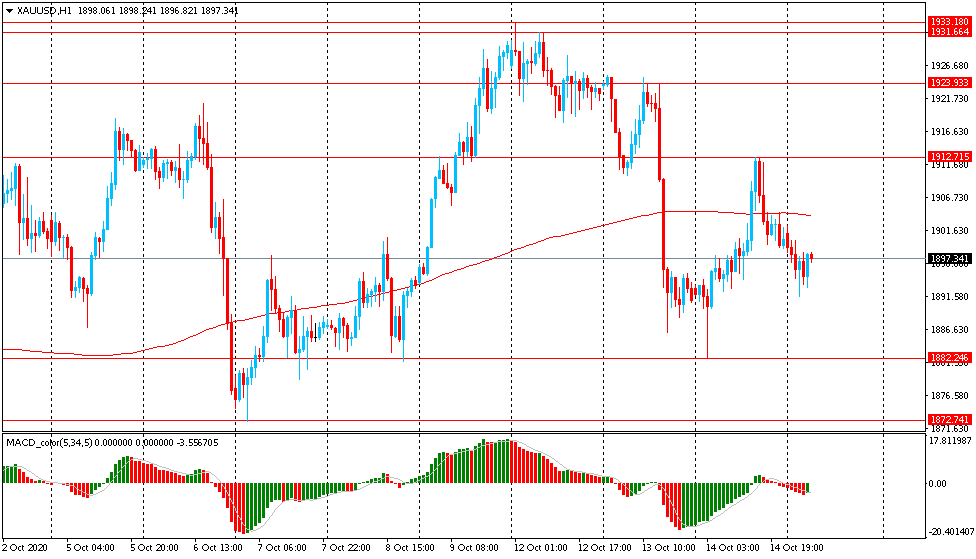 Вчера пара XAU/USD торговалась с повышением и закрыла день на положительной территории около цены $1900. Сегодня золото торговалось в узком диапазоне $1892-03, оставаясь вблизи вчерашней цены закрытия.